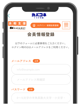 ②組合アプリ「カバコネ」から組合ホームページ「KABANET」の会員登録を行う